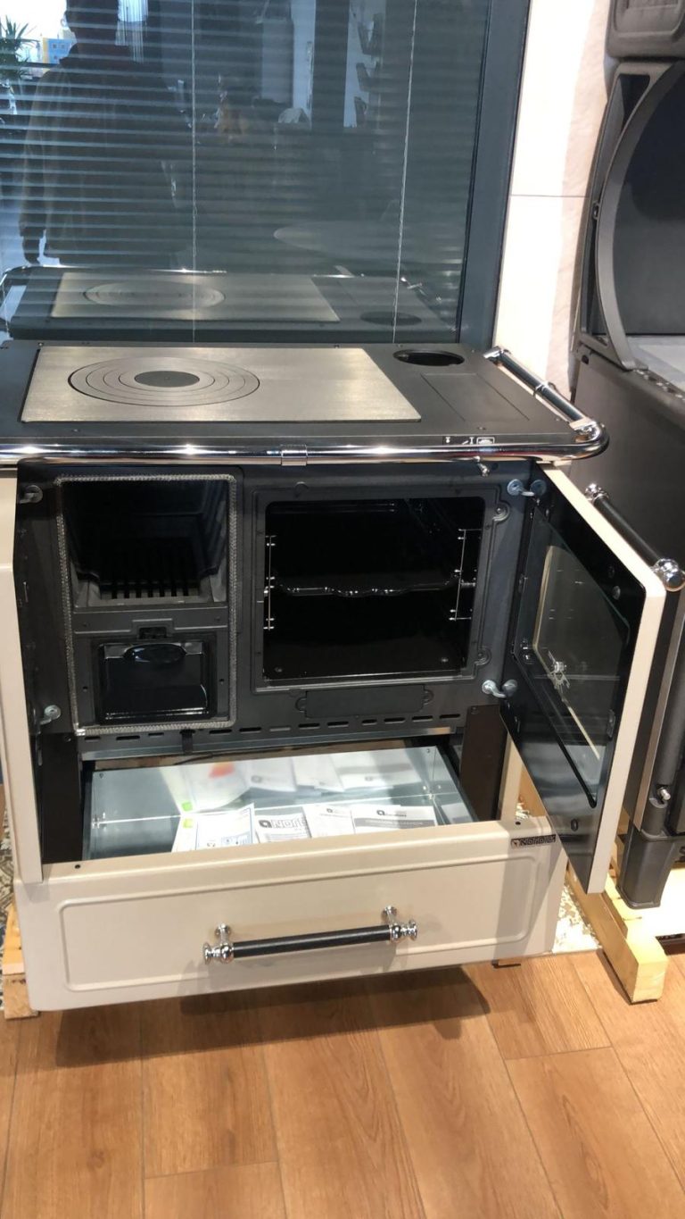 Özellikler: • Çıkarılabilir kül çekmecesi • Emaye dökme demir cephe ve çerçeve • Ocağın iç kaplaması dökme demir • Üst pişirme plakası ve halkalar cilalı dökme demirden • Emaye çelikten kapılar • Çift Yanma Sistemi (düşük emisyon) • Odun kurutma çekmecesi • Porselen emaye çelik fırın 41 l • Çift camlı fırın kapağı • Çift camlı dökme demir yanma bölümü kapısı, iç cam seramik, dış cam temperli • Kolay temizlik için ayaklar • Sağ üst duman çıkışı • Emaye pişirme tepsisi (1 adet)