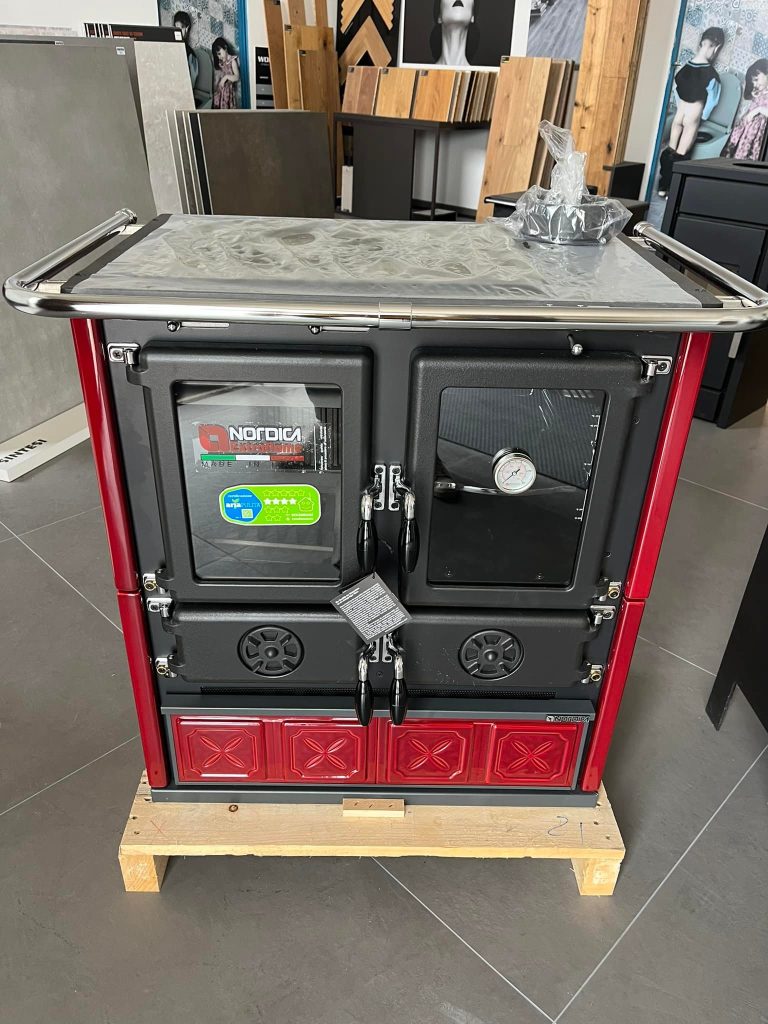 LA NORDICA Rosetta 16 Maiolica Kırmızı, daha az alana sahip mutfaklar ve evler için. Rosa serisindeki büyük kardeşleri gibi, Liberty kırmızı veya Liberty kreminde saklanamayacak kadar güzel seramik karolar var. Ayrıca isterseniz ğoğal taştan yapılmış bir kaplama seçeneği de vardır.