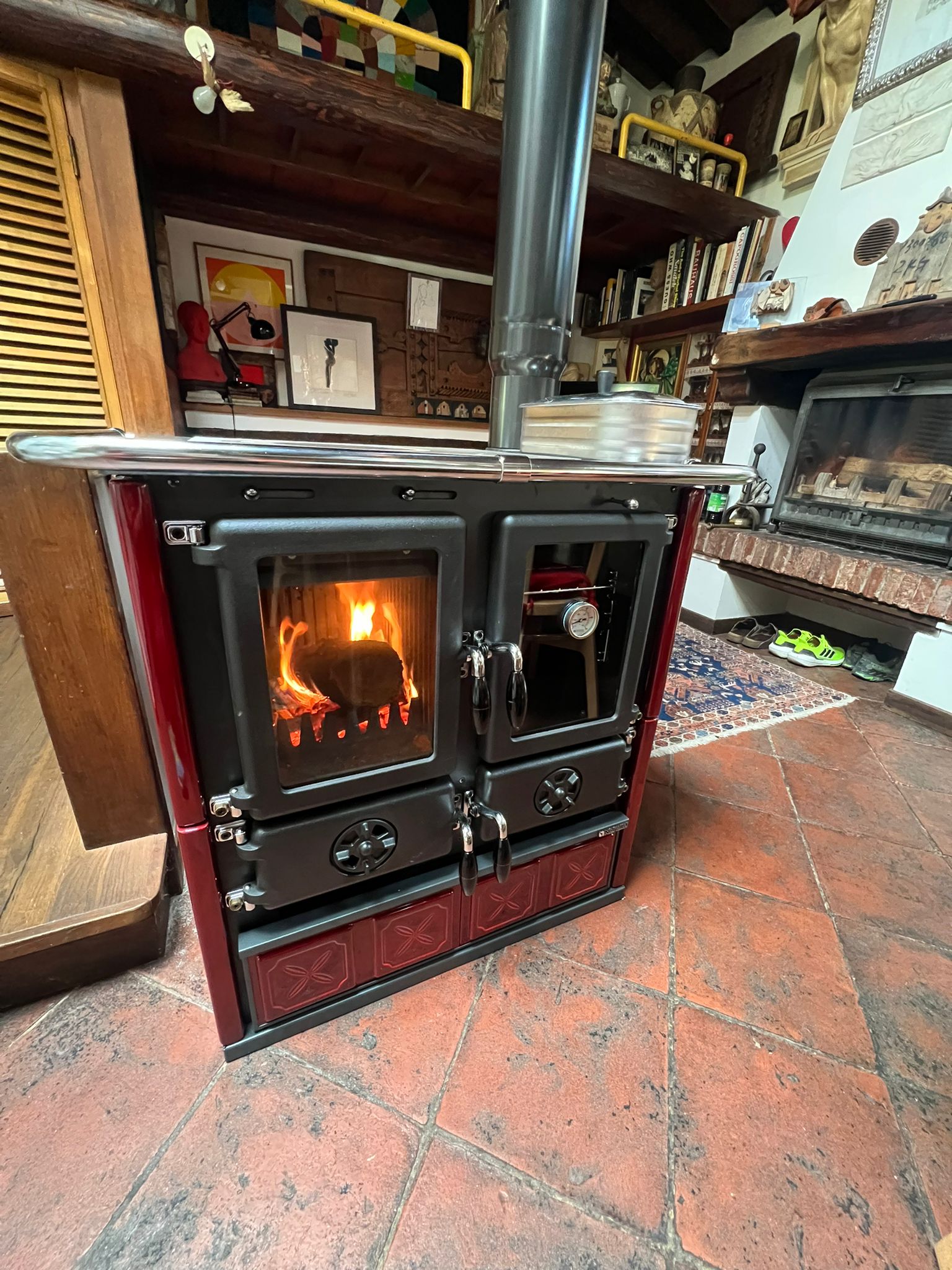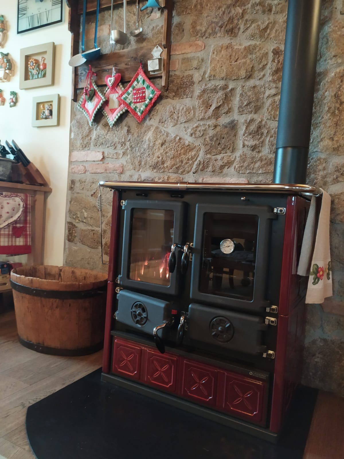 Özellikler: • Çıkarılabilir kül çekmecesi • Emaye çelik cephe • Ocağın iç kaplaması dökme demir • Üst pişirme plakası ve halkaları parlatılmış dökme demir • Kapılar ve çerçeve emaye dökme demir • Daha iyi yanma kontrolü için ayarlanabilir birincil ve ikincil hava • Yanma sonrası sistem (düşük emisyonlar) • Çıkarılabilir ahşap çekmece • Porselen emaye çelik fırın 28 l • Seramik cam • El yapımı Mayolika kaplama • Sağ üst veya arka duman çıkışı • Emaye arka tepsi (1 adet)