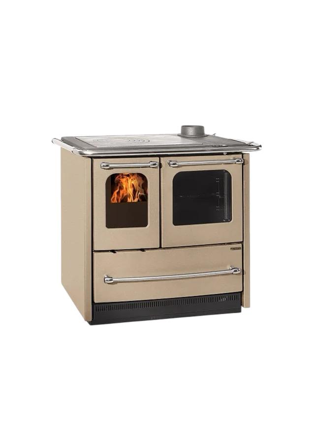 Solda, kapısı çift camlı ve 700 ° C’ye kadar ısıya dayanıklı olan dökme demir yanma bölümü bulunmaktadır. Sağ taraftaki emaye fırında üç fırın tepsisi veya bir ızgara için yer vardır. Teslimat kapsamına bir fırın tepsisi dahildir. Büyük, iki bölmeli kapı sayesinde yemeklerinizi her zaman göz önünde bulundurursunuz. Kuzinenin alt bölümünde büyük bir depolama çekmecesi bulunmaktadır. Bu bölümde odunlarınızı kurutabilir veya tencerelerinizi saklayabilirsiniz.